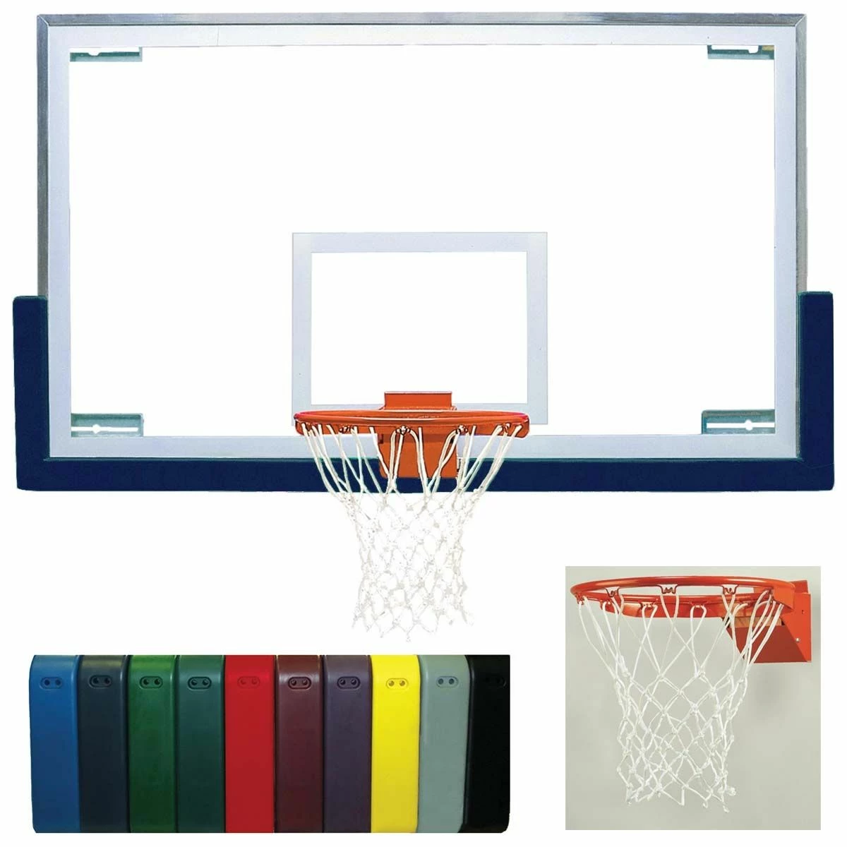 The Bison backboard rim package with the standard board is a great value that includes a standard 42″ short backboard, TruFlex breakway goal, and Duraskin indoor backboard padding. The standard 42″ short backboard is predrilled for original DuraSkin backboard padding and is constructed of tempered glass, as well as aluminum framework. For great visibility, there is a bright white border and shooters square on the board. The DuraSkin indoor backboard padding comes in industry leading colors, is extremely thick and is constructed of durable foam molded in steel. The FruFlex breakaway goal is economical yet durable. It features a heat treated ball and socket, positive lock mechanism that provides excellent rebound consistency over the life of the goal. It has a steel coverplate and continuous netlocks. This goal is simple, and maintenance-free so it’s always ready for game-time!Â