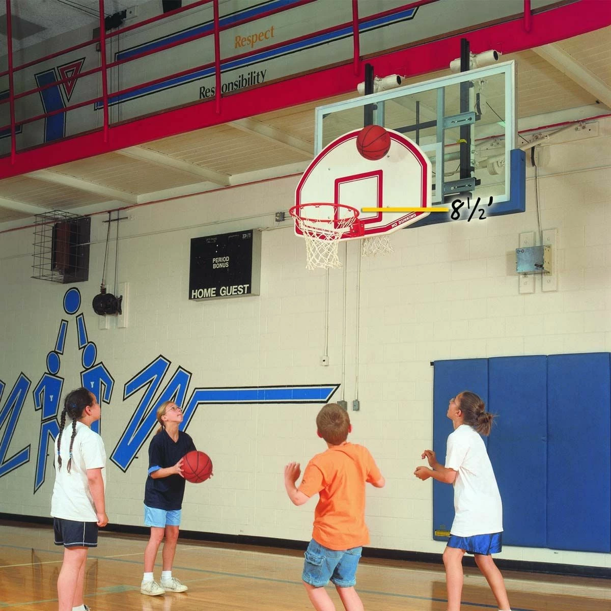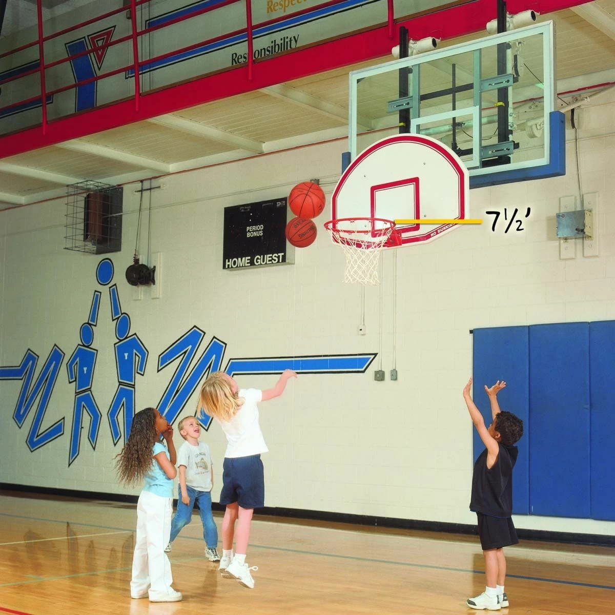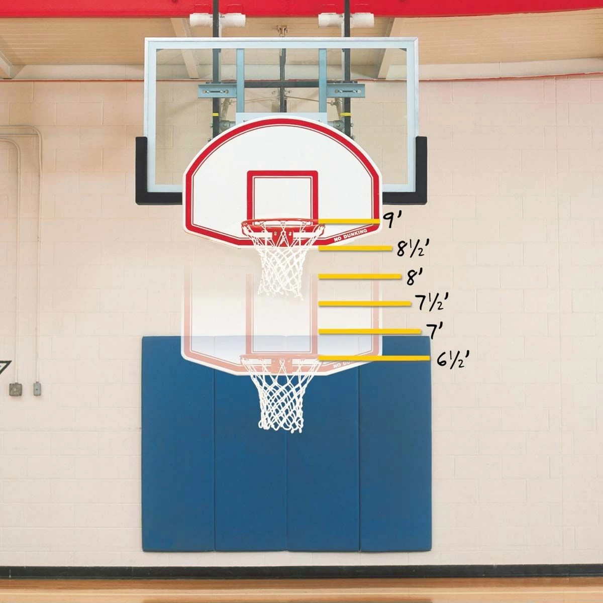 Helps teach young players proper shooting technique. For over 20 years, Easy-Up has put the rim within reach and helped to teach aspiring young basketball players proper shooting techniques. Equipment with official 10′ goal height can be converted in less than five minutes with no use of tools. Only Easy-Up will fit on any style of goal, breakaway or non-breakaway, regardless of manufacturer, age or condition. An Easy-Up goal lowers rim and moves rim 24″ closer to free throw line. The full size rim allows play with either full sized or reduced size balls depending upon player age. Standing as low as 2′ above the floor, one person can easily attach the tubular frame to a 10′ goal with a unique cam operated lever. Not suitable for dunking or hanging from goal! This age appropriate goal height for kids of all ages is now available in one single adjustable unit. This one model can be set at 6-1/2′, 7′, 7-1/2′, 8′, 8-1/2′ or 9′ goal height for kids as young as four years old. The goal’s height can be adjusted a few minutes without the use of tools.