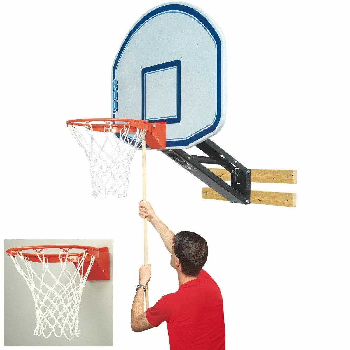 The QuickChange graphite basketball shooting station from Bison features an official size flex goal and direct goal mount design for the lowest cost of an adjustable wall mount system. This shooting station features a 36″ x 48″ molded graphite fan-shaped backboard that can adjust from 7.5′ to 10′ in 6″ increments with a broom handle from the floor with 22″ of safe play area at 10′ rim height. You can mount this indoors/outdoors.