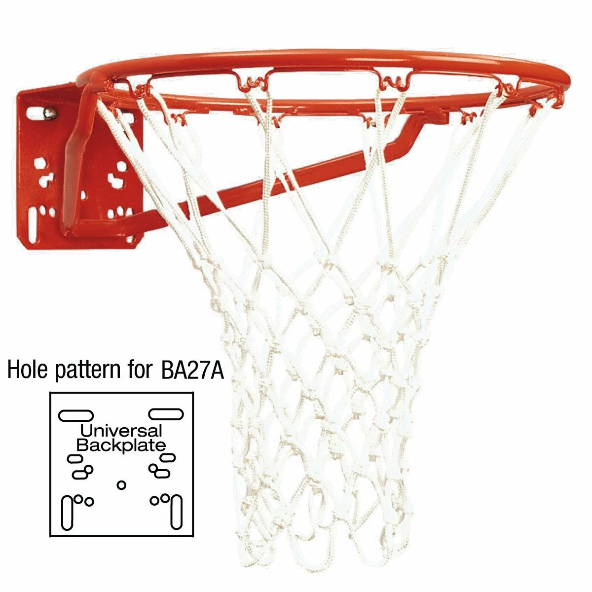 Excellent upgrade from standard front mount goals at a lower cost than double rim or breakaway goals. The 5/8” high-tensile alloy rim is 1-1/2 times the strength of normal rim material. Full 5/8″ computer designed reinforcing bar gives “super support” when a player suspends from the goal. The additional 5/8″ brace strengthens the vulnerable joint between rim and backplate