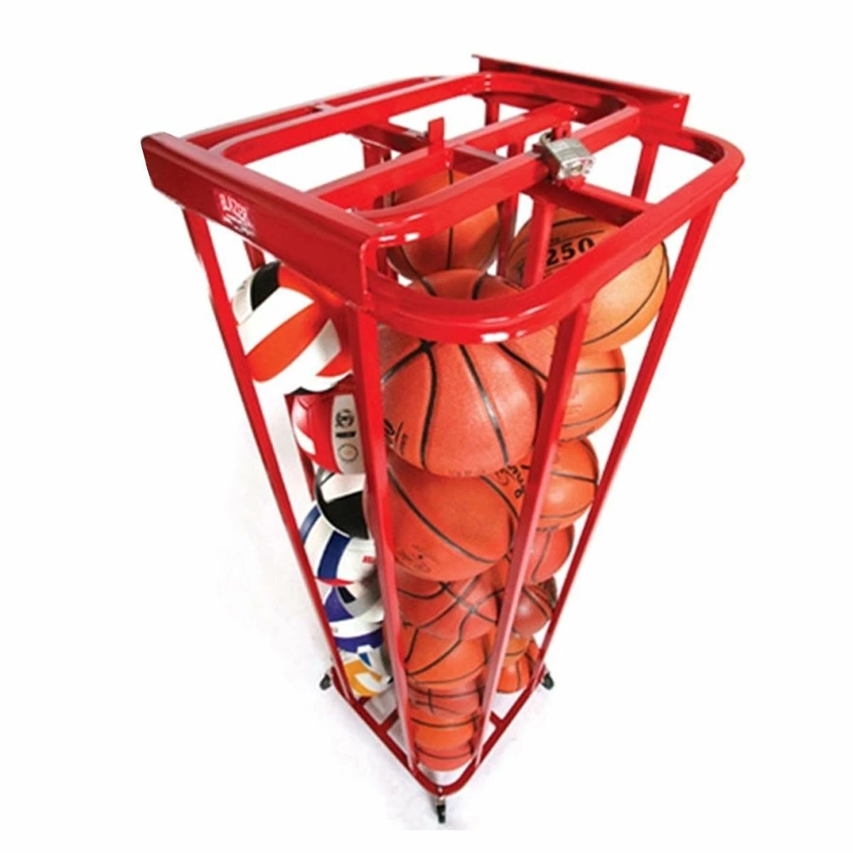 Store and transport all of your sports balls with ease in the Blazer 4827 Space Mizer lockable vertical ball cage. This space efficient ball cage stores and transports a multitude of balls using very little floor space. It has non-marking swivel casters to provide smooth rolling. This tall ball cage is 70″H and safely stores 28 basketballs or 32 volleyballs, but can be used to store all kinds of balls such as medicine, soccer etc.