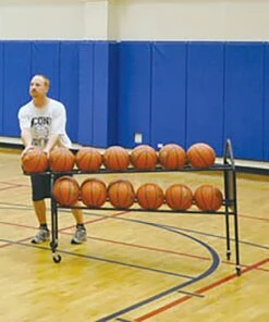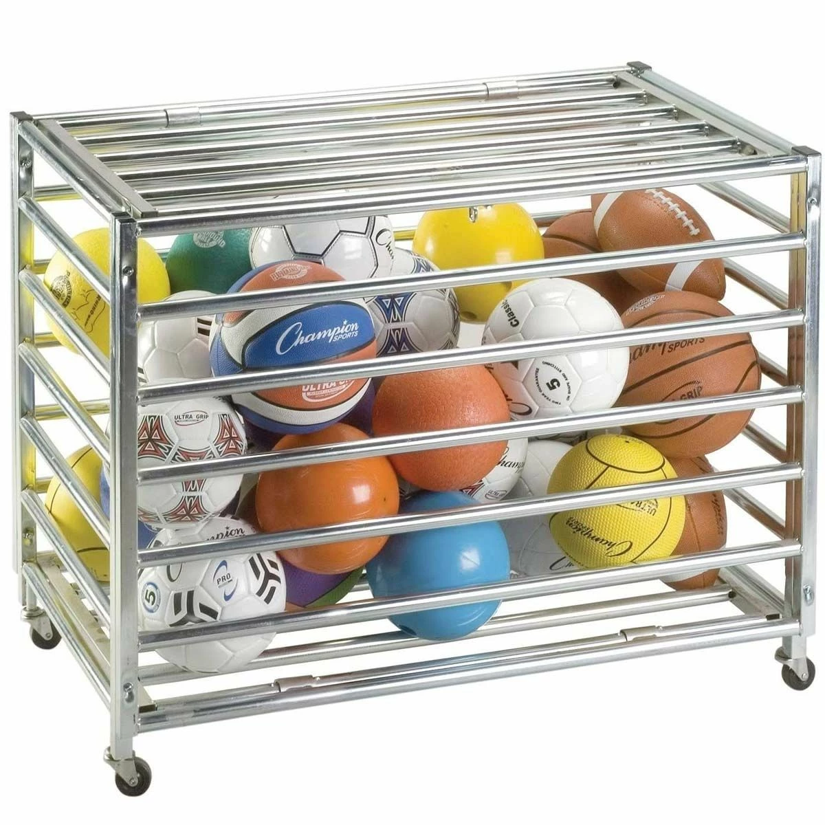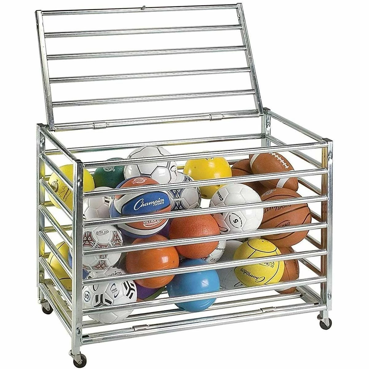 - Holds up to 30 basketballs, soccer balls or playground balls