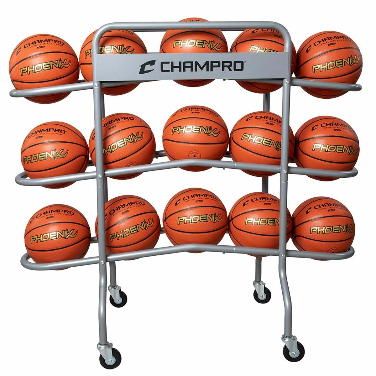 The Champro professional ball rack holds up to 15 basketballs and is equipped with four heavy duty rotating casters that allow you to move the cart around the court with ease. Made with durable 25mm (1″) diameter aluminum with an attractive powder coated finish, this ball rack is ideal for physical education classes and recreational sports.