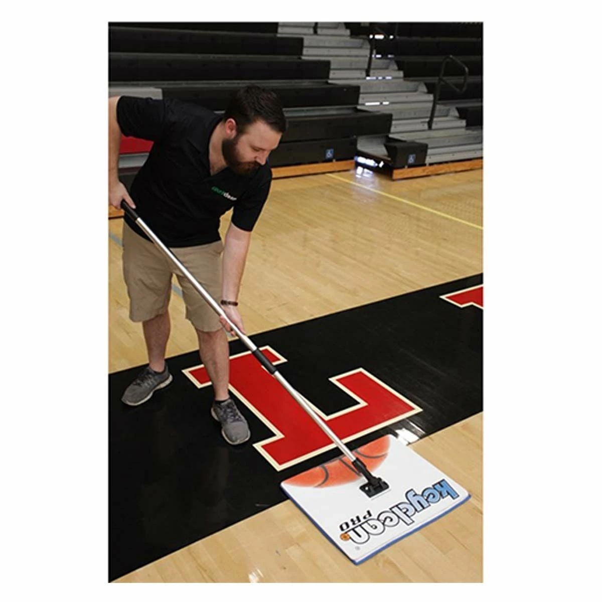 The Key Clean Pro reduces potential for slips and falls that can cause serious injury by picking up moisture and dirt in the “key” areas during practice & games. Key Clean is the perfect companion to the Courtclean full court cleaner (see below). This lightweight microfiber mop is a breeze to use and the telescoping handle provides adjustability for different users. Key Clean Pro has super absorption allowing floors to dry quickly, leaving them lint free and spotless. Not only does Key Clean PRO polish and buff floors, but it also removes germs, mites, fungus, mold and bacteria.