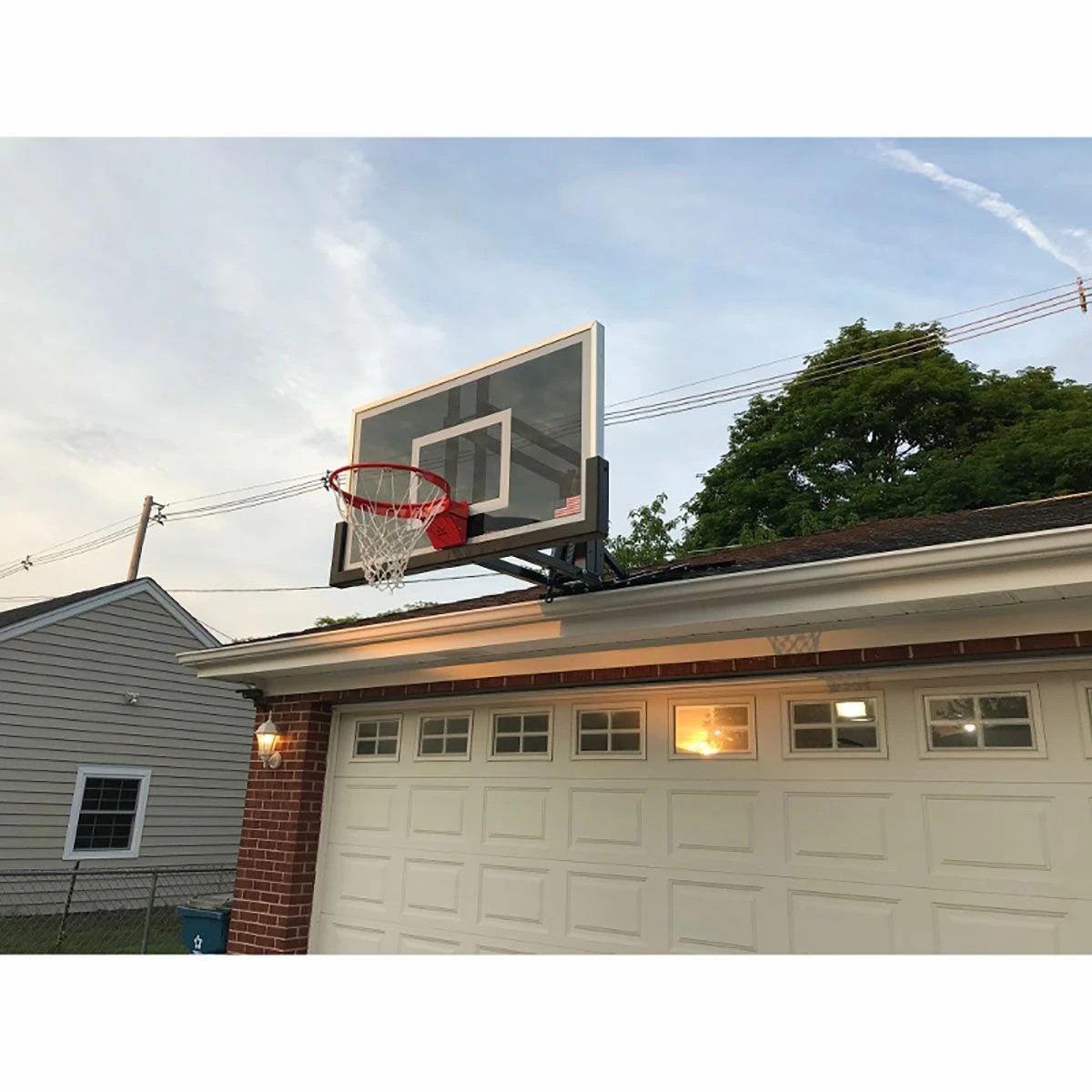 The RoofMaster basketball hoop from First Team is a convenient and cost effective choice for mounting to any roof pitch or vertical wall. This basketball goal system offers infinite adjustability for those without room for a pole mounted system. This set includes a heavy-duty flex goal with nylon net and your choice of either a 1/2” thick clear acrylic backboard or a 1/4” thick cushioned tempered glass backboard. This durable system is great for both indoor and outdoor use. With a simple turn of the included hand-crank handle, the RoofMaster can adjust from 6’ to 10’ from ground level. The easy-to-read height indicator displays the exact height of the rim so you know when you’ve reached the desired height. A heavy-duty super strength flex goal is direct mounted to eliminate backboards stress and includes a nylon net with continuous net-locks. Finished with an orange powder coat, the goal features an enclosed breakaway mechanism and a protective finger guard to prevent injury. See “Additional Info” tab for installation instructions and specifications/drawings.