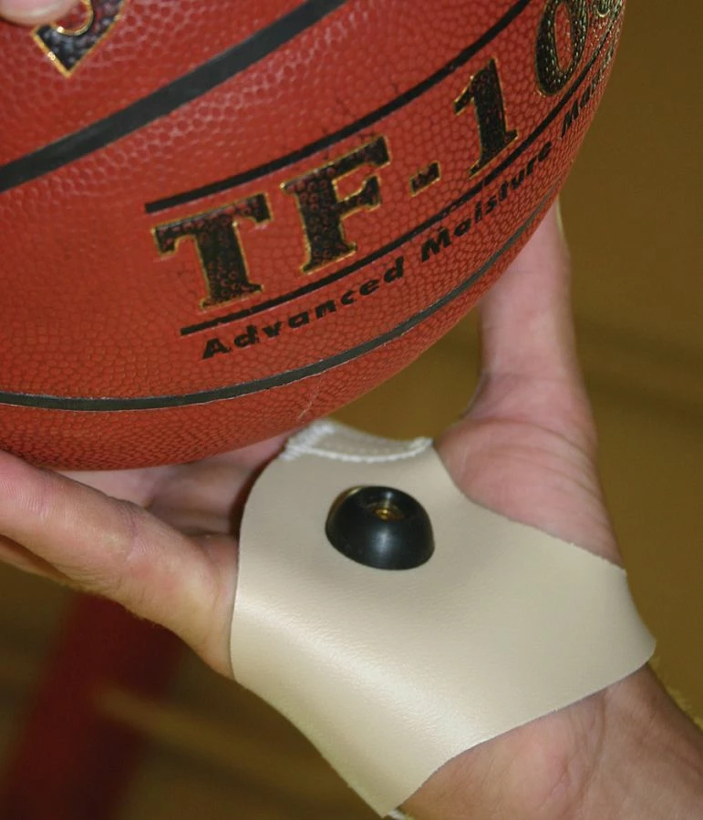 The KBA basketball ball handling dribble gloves help teach proper dribbling, passing, catching and shooting techniques. A button in the palm forces proper touch in developing ball handling skills. The button will also cause mishandling of the ball if not controlled in the proper hand and fingertip control areas. The gloves are constructed from tough washable leather with nylon stitching and features Velcro fasteners for adjustment.