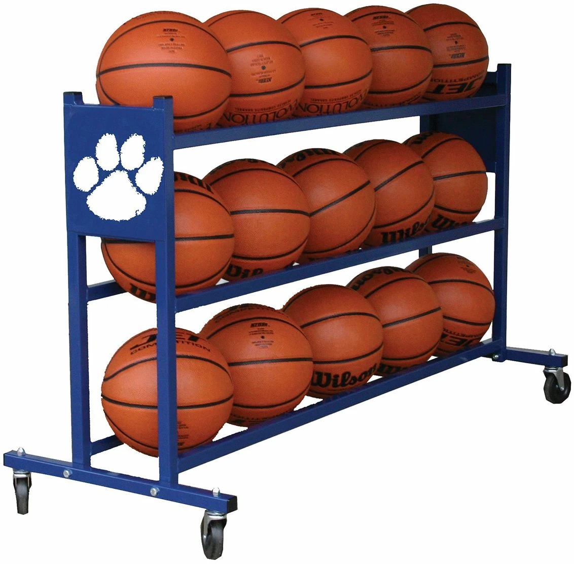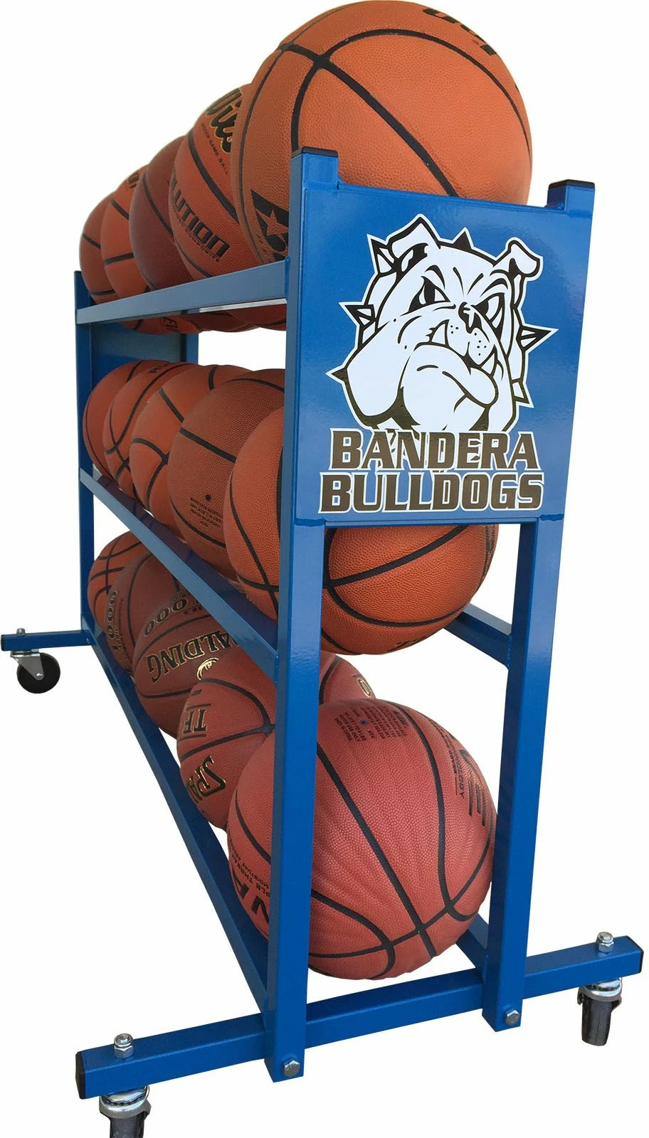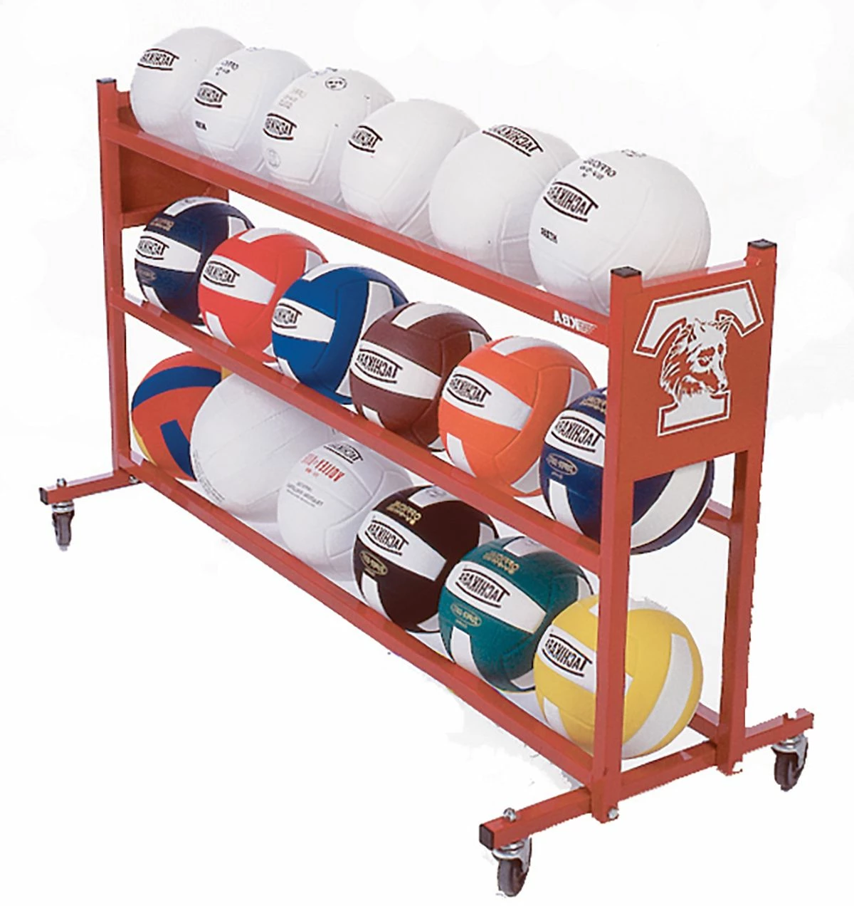 Customize a ball carrier for your team. These Ball Carriers are made of 16 gauge steel tubing. The entire body of the rack is all welded…no assembly. The wheels are heavy duty 3″ swivel casters that are non marring to your gym floor. Wheels come assembled to the axles but must be bolted to the rack with four bolts and lock nuts. This rack will not shake apart. Will last for years!!! Will hold 15 Basketballs, 18 Volleyballs or 18 Soccer Balls.