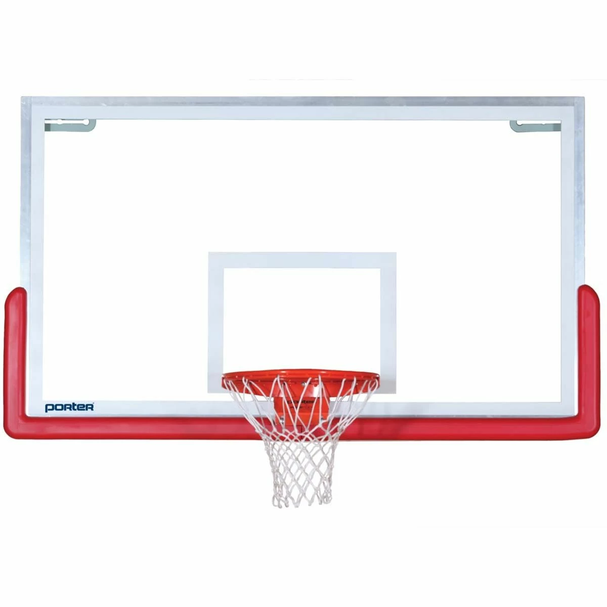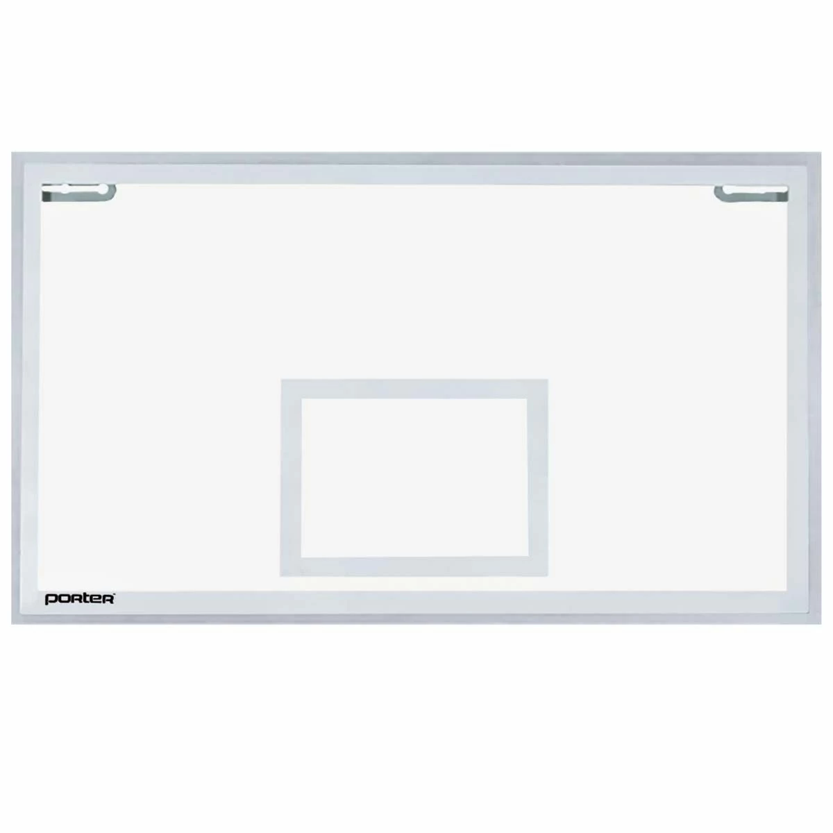 The Porter Center-Strut rectangular glass backboard features a three point attachment support frame and is designed for use only on “direct goal mount” support structures. (where the goal is mounted directly through the backboard and into the support structure) 1/2″ thick fully tempered glass is secured to a unitized steel frame. Official white border and target area are fired into the glass. Limited lifetime warranty when installed on Porter Center-Strut support systems.