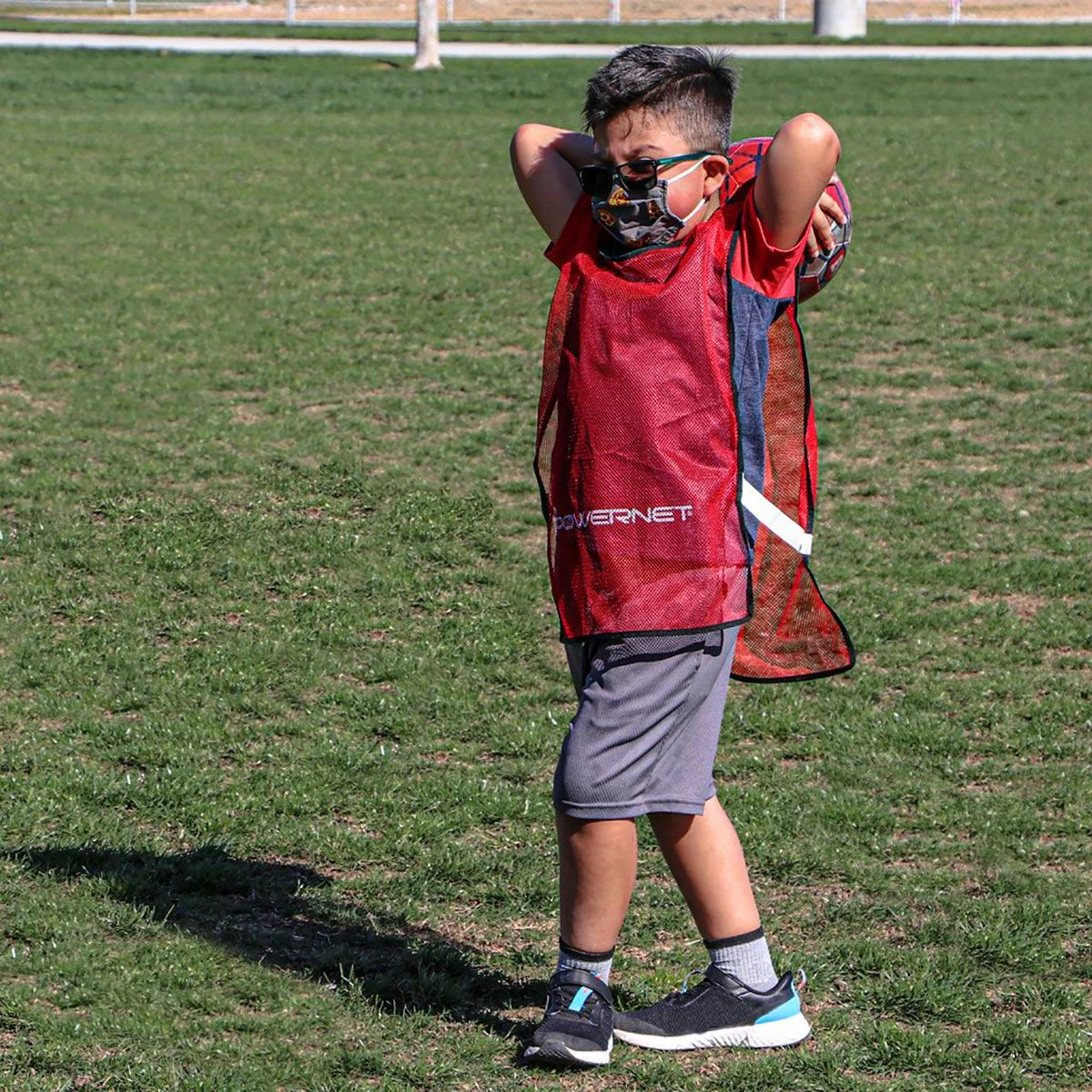 This 6 pack of training mesh pinnies from Powernet feature high-visibility red for easy player identification and are made with breathable material to prevent overheating. The elastic straps make for a comfortable fit that is relaxed, but secure for the entire game or practice. Use these pinnies for any sport or keep them in your equipment bag in case a player needs them.