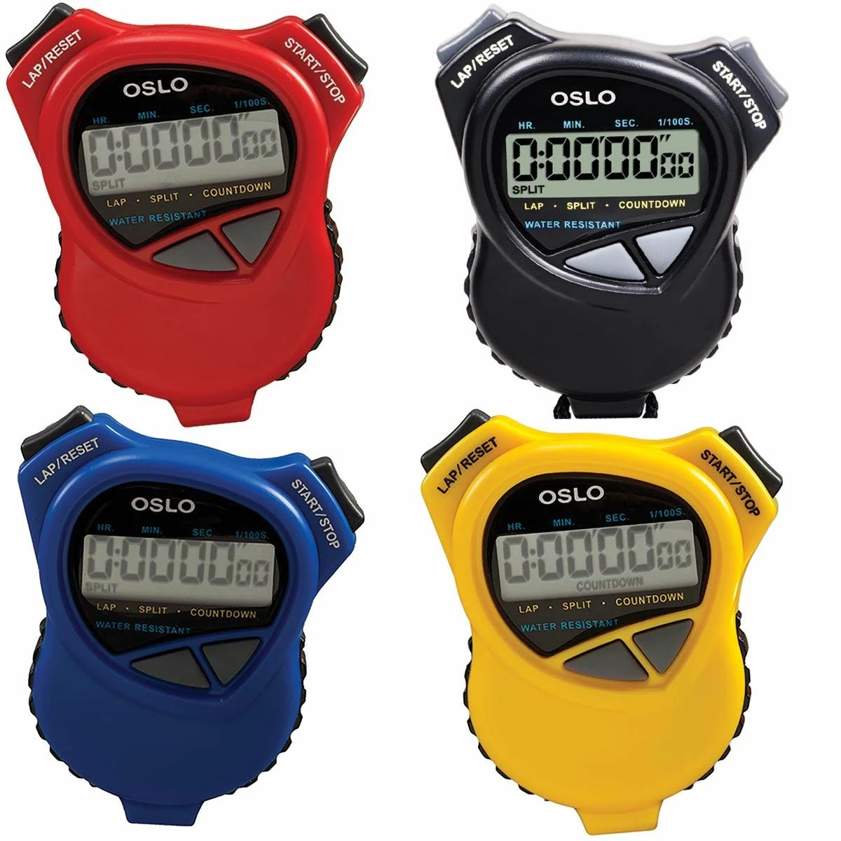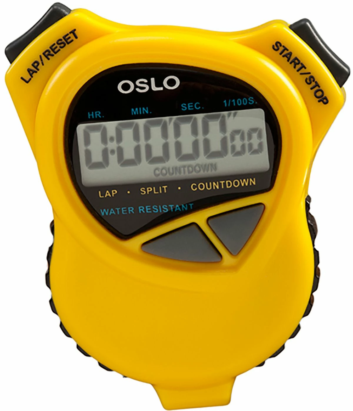 The Robic OSLO-1000W stopwatch offers a thoughtful design and construction. The stopwatch is available in numerous colors allowing you to assign each person/station their own unique color. The OSLO-1000W timer shows the time remaining and counts up after completion. Other features include event, lap and split timing, easy-to-read display, 2-finish time memory recall and an unlimited number of timer readings.