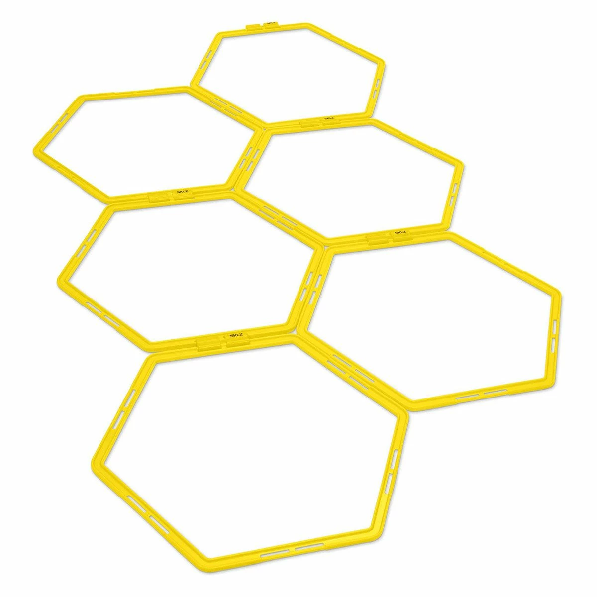 The SKLZ Speed Web agility trainer set was designed to improve footwork, agility, and explosive movements with six customizable hexagonal rings. Configure the web in a variety of speed ladder patterns, or hurdles with easy to connect clips. The hexagons can be separated for individual skill work for various sports and are durable for use on most surfaces, including grass, turf and tracks. When you’re done training, this set is compact enough to fold up and store anywhere.