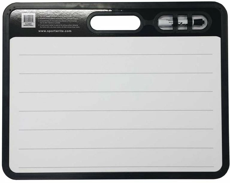 The Sport Write Classic is a HUGE coaching board which is lightweight and durable with dry erase writing surfaces on both sides. The large surface allows the coach to make presentations to the entire team. The front displays a full court and the backside provides plain white space for line-up and other team communication. Waterproof and durable, this is one of our best selling coaching items!