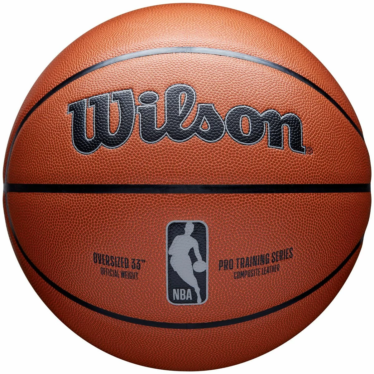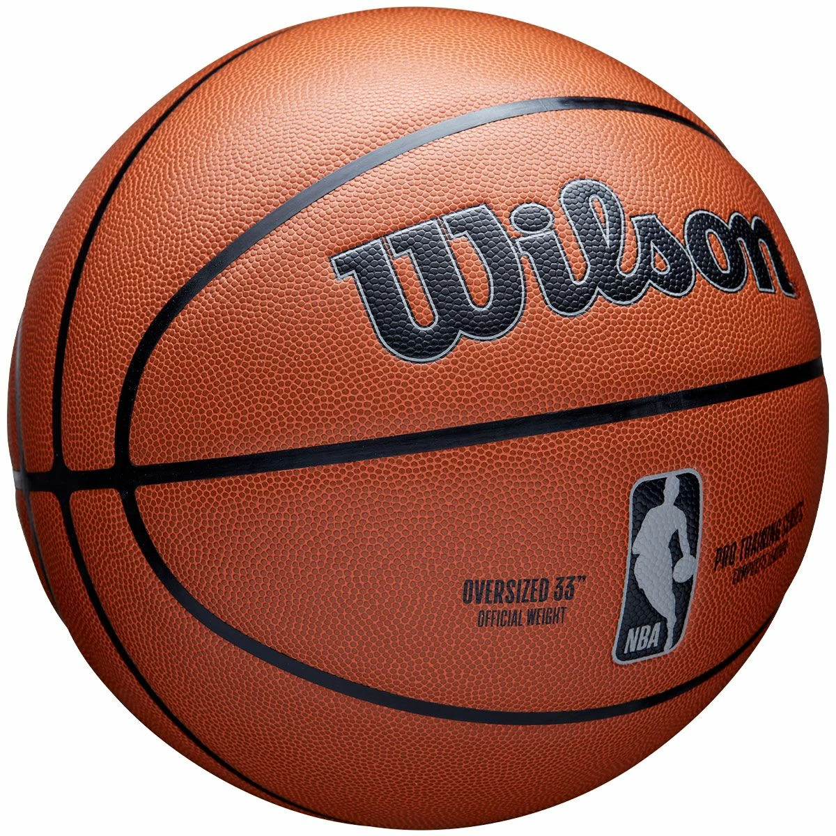 The Wilson 33” oversized training basketball is a great aid for helping players develop their arc and accuracy, giving you less room for error when shooting. This basketball weighs the same as a regulation size 7 ball and features an orange composite leather material.
