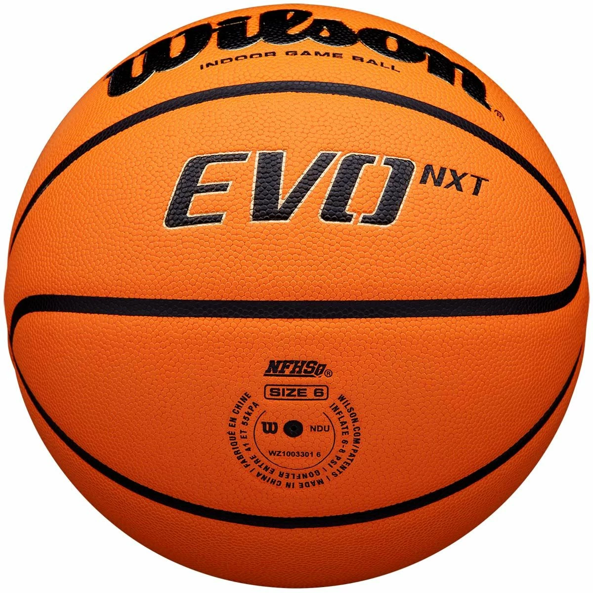 The Wilson 28.5″ EVO NXT NCAA basketball is the official women’s NCAA tournament basketball. The EVO NXT features a micro-touch cover with an extra layer of texture on the pebbled cover to create a double-layered grip. This unique design helps channel away moisture, giving the player ultimate control. In addition, the extended range tech redistributes the weight and balance of the ball, making it easier to shoot from long range. The patented Aqua-Grip laid-in channels allow for an unparalleled feel and control. NFHS & NCAA approved.
