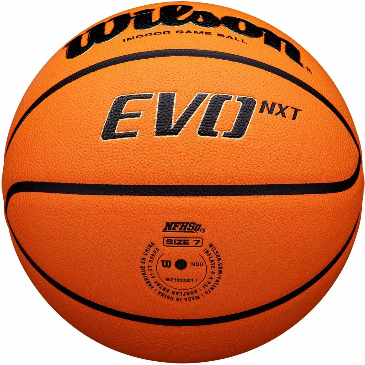 The Wilson men’s EVO NXT basketball is the official ball of the men’s NCAA tournament. The EVO NXTÂ features a micro-touch cover with an extra layer of texture on the pebbled cover to create a double-layered grip. This unique cover design also helps channel away moisture, giving players the ultimate in ball control. In addition, the extended range tech redistributes the weight and balance of the ball, making the EVO NXT easier to shoot from long range. The patented Aqua-Grip laid-in channels allow for an unparalleled feel and control. NFHS and NCAA approved.